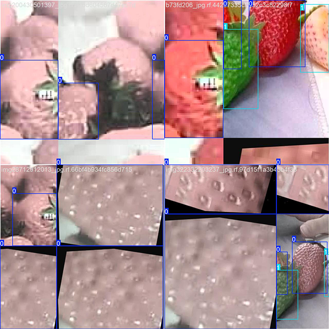 建立了一个包含不同状态草莓图像的数据集,并利用人工标注的方式对图像进行了分类定位。为了增强模型的适应性,在此过程中我们对该数据集进行了强化处理。随后开发了一种高效的目标检测方案,并基于YOLOv8架构对其进行了训练以实现精准识别草莓的位置及其成熟度状态。该模型整合了更为先进的特征提取技术和目标检测方法,在运行速度和识别精度方面实现了显著提升