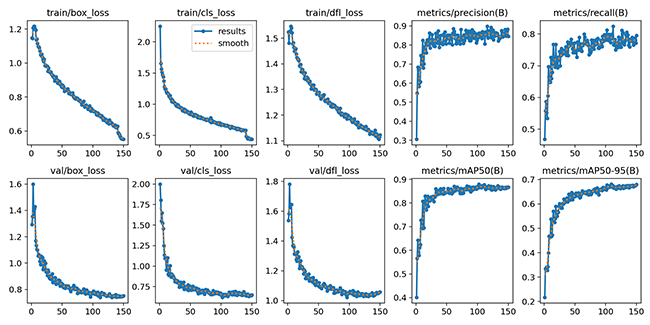 val/dfl_loss: 反映了验证集上分布焦点损失(DFL Loss)的变化情况。 趋势表明验证集上的分布损失持续下降,并表明模型在处理未见数据时的边界框预测质量逐步提升。