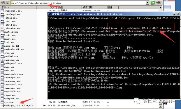 安装的时候将Weblogic放在Java JDK的bin目录下,防止出现因环境变量带空格导致的错误,安装过程一直点击下一步即可。