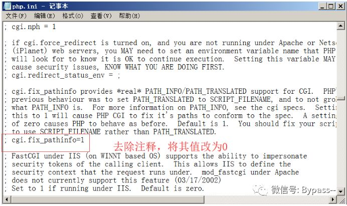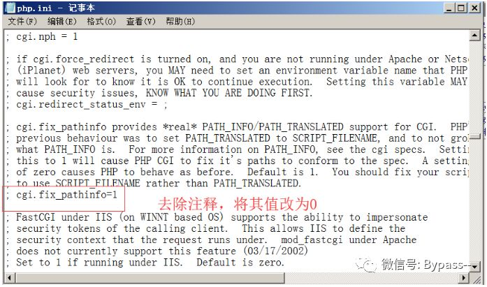 配置cgi.fix_pathinfo(php.ini中)为0并重启php-cgi程序