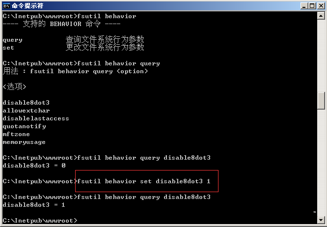 查询是否开启短文件名功能:fsutil 8dot3name query