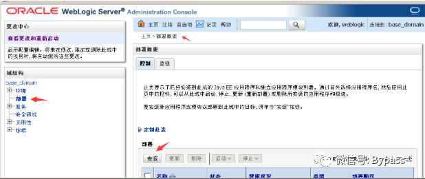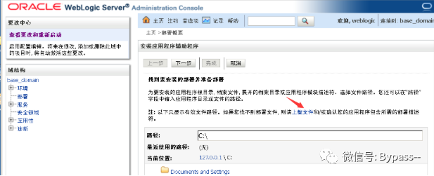 以下复现是在Weblogic开发模式下进行的,若需在生产模式下进行复现,则需要 登录后台页面,点击base_domain的配置,在”高级”设置中 开启 “启用 Web 服务测试页” 选项,经过我的验证发现开启之后,不仅需要账号密码登陆,即使登陆了也没有这两处上传点。