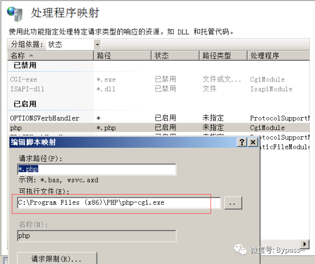 6、返回第五步的第一个图片位置,点击处理程序映射,添加如下。