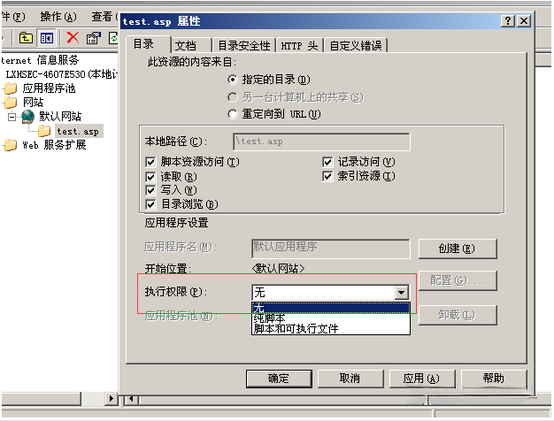 从网站属性->主目录->配置 可以看出,他们都是调用了asp.dll进行的解析。