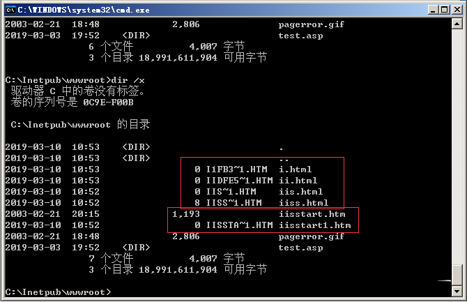 - 不支持中文文件名,包括中文文件和中文文件夹。一个中文相当于两个英文字符,故超过4个中文字会产生短文件名,但是IIS不支持中文猜测。