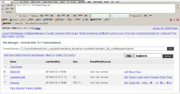 访问 ws_utc/config.do,设置Work Home Dir为ws_utc应用的静态文件css目录C:\Oracle\Middleware\Oracle_Home\user_projects\domains\base_domain\servers\AdminServer\tmp\_WL_internal\com.oracle.webservices.wls.ws-testclient-app-wls_12.1.3\cmprq0\war\css,因为访问这个目录是无需权限的,提交后,点击左侧 安全-> 添加,然后上传Webshell。