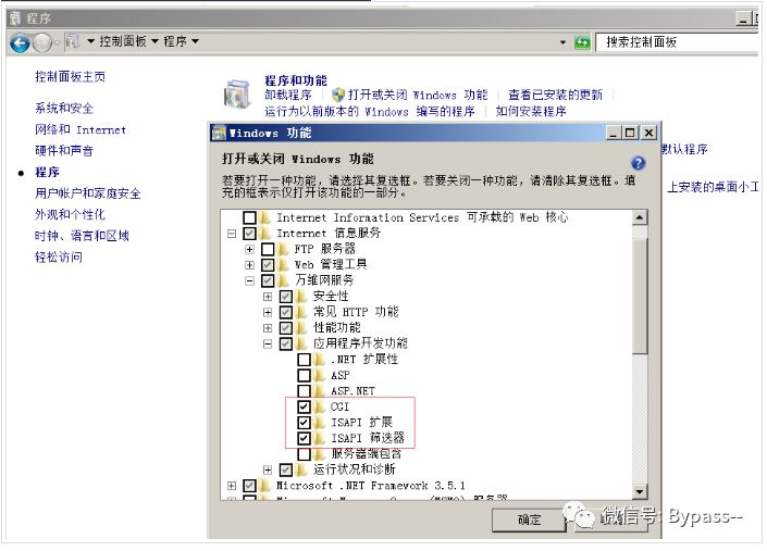1、安装IIS7.5,控制面板 -> 程序 -> 打开或关闭windows功能。