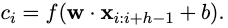 每个卷及操作都涉及一个filter w∈R^{hk}产生一个新的特征
