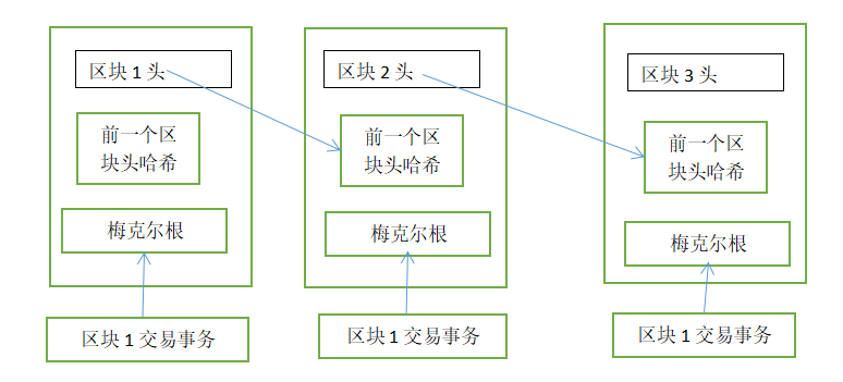如上所述,区块链账本它表示一种特有的数据记录形式。区块链就是“区块+链”,所谓的区块就是指数据块的意思,每个数据块之间通过某个标志连接起来的,从而形成一条链,我们看一下示意图: