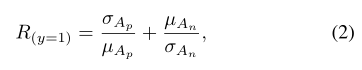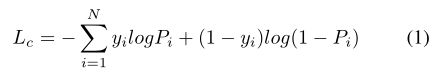 设 mini-batch 的大小为 N,则 yi 表示第 i 对 RGB-T 样本的真实标签。通过模型 MDNet 进行推断后得到预测结果 Pi。为了增强分类器在跟踪过程中的目标聚焦能力,在 MDNet 中引入了一个基于交叉熵损失函数的正则化项。该正则化项的设计初衷在于:通过该正则化项可同时获取两个注意力掩码矩阵(positive attention map Ap 和 negative attention map An),其中 positive attention map Ap 和 negative attention map An 分别代表了与目标对象相关联的目标区域及其非相关区域的空间分布信息。针对每一个真实标记为正类的目标,在其对应的 Ap 矩阵中各像素值应尽可能地较大;而对应的 An 矩阵中各像素值应尽可能地较小。由此定义了如下形式的能量损失函数: