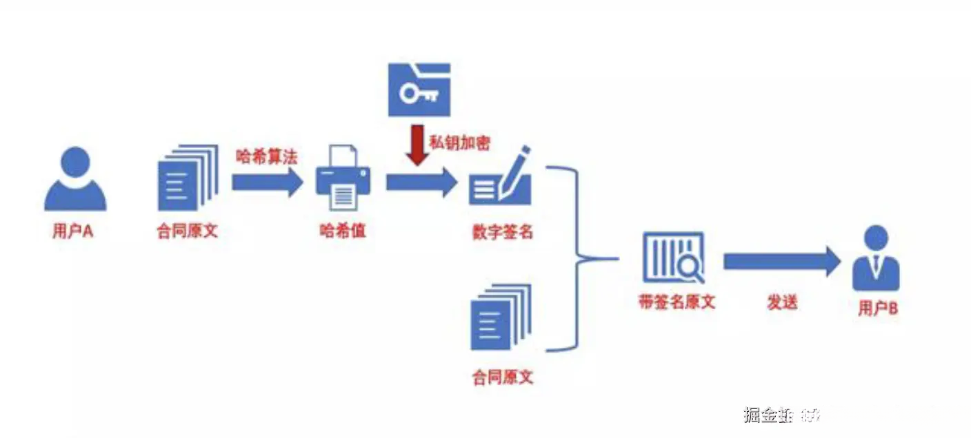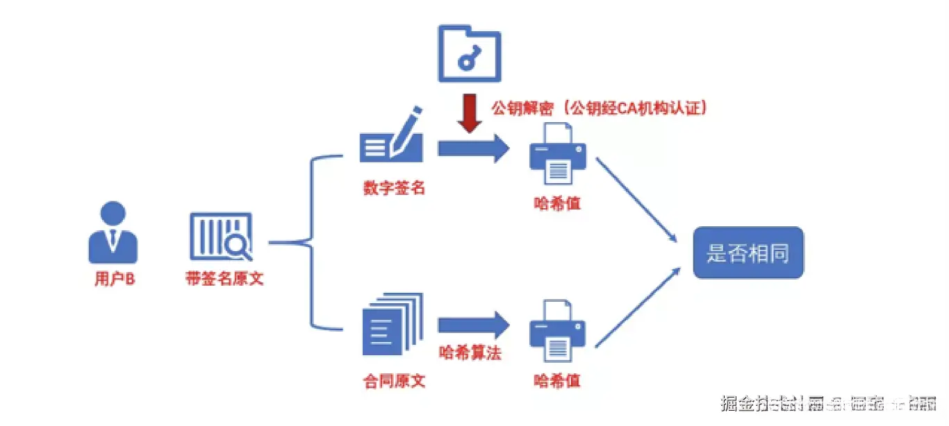 现实生活中与办理身份证相近的流程,在电子认证领域中也需要通过"电子认证服务机构"(简称CA机构)进行CA数字证书的申请。中国工业和信息化部及工信部则赋予这些CA机构 authority to create and issue digital certificates, employing asymmetric encryption technology to generate a pair of keys—private key and public key—and attach the holder's true identity. 在电子合同订立过程中,人们可用此来证明自身身份并验证他人身份。