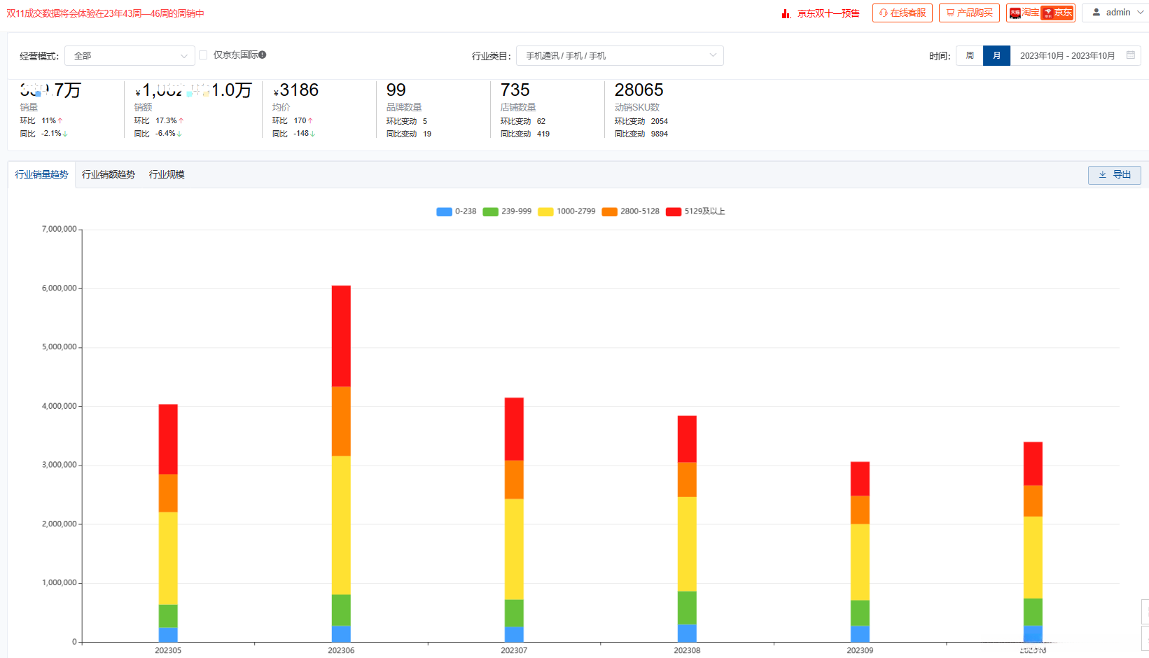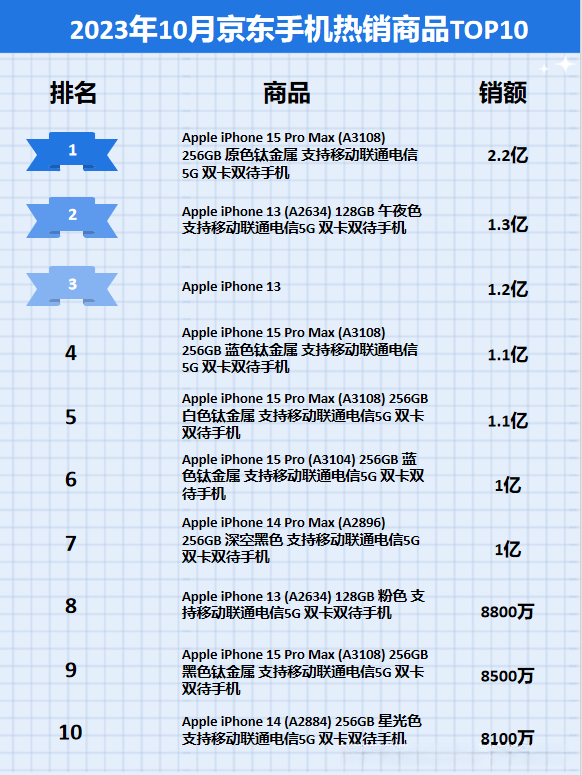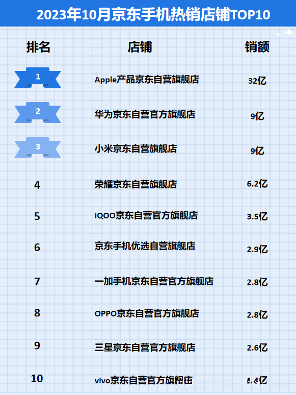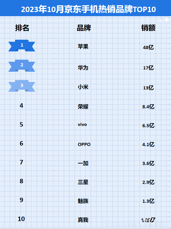 京东数据分析(京东大数据):2023年10月京东手机行业品牌销售排行榜