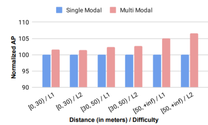 DeepFusion显著提高对远距离目标(如超过50米)的检测性能。