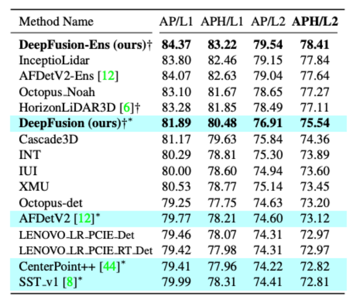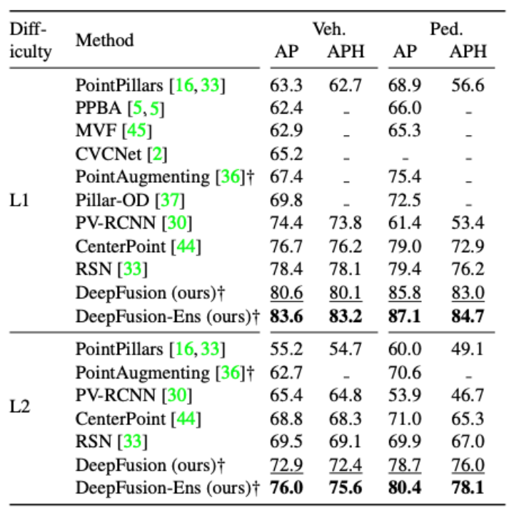 (3)DeepFusions 在 Waymo 开放数据集上实现了最先进的性能