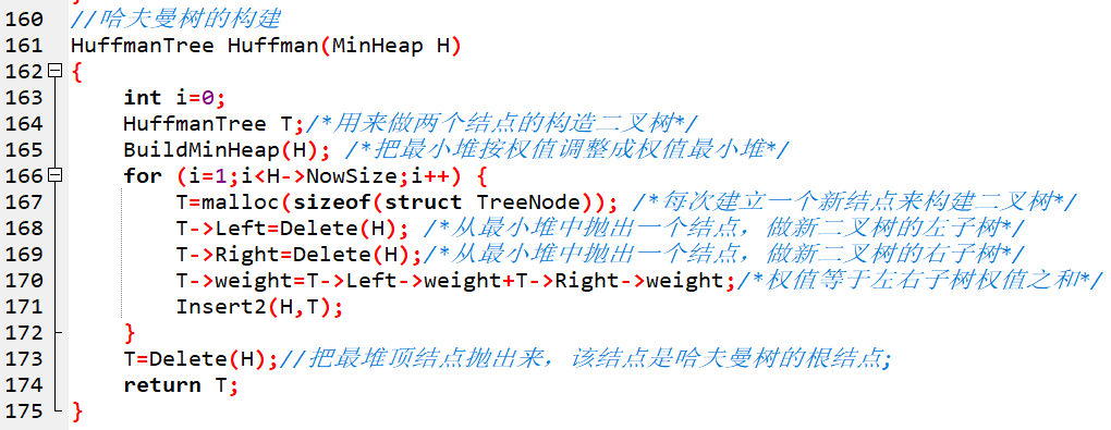 这样一棵哈夫曼树就创建成功了。按照这个思路,我们建立一棵哈夫曼树,就是每次从一个权值排好序的序列中找出两个最小结点来建树,我们可以利用堆,最小堆,每次从最小堆里抛出两个最小结点,然后把它们的权值相加,形成一个新的二叉树。