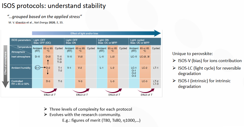 图 6.用于了解钙钛矿太阳能电池稳定性的 ISOS 协议,根据施加的应力分组 [2]