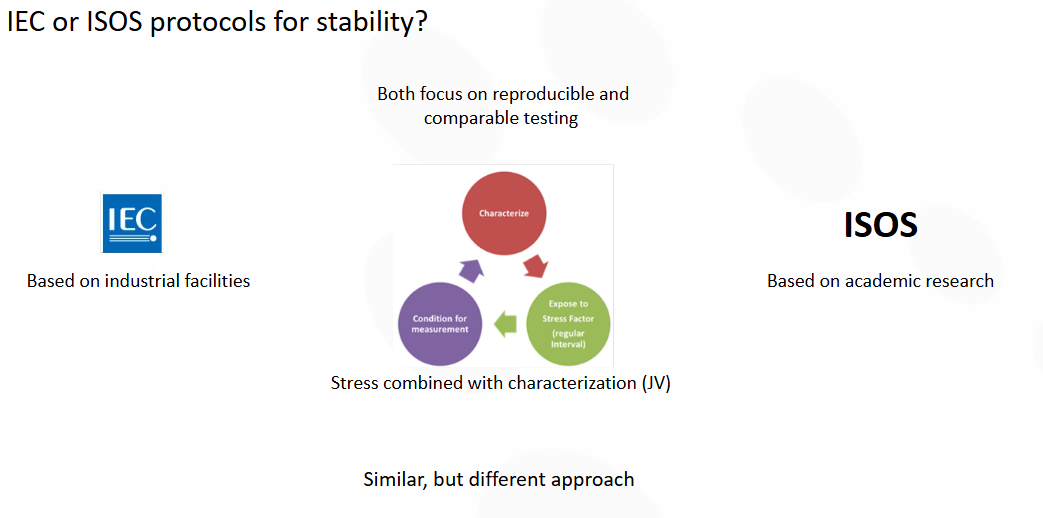 图 3.为工业界 (IEC) 和学术界 (ISOS) 太阳能电池测试而开发的两种协议框架