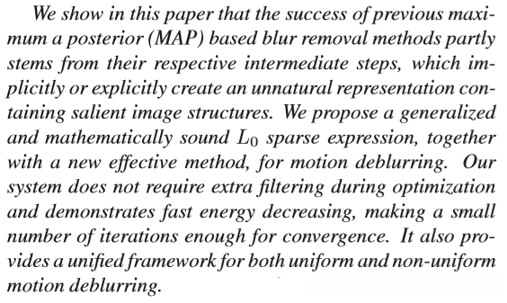 《Unnatural L0 Sparse Representation for Natural Image Deblurring》