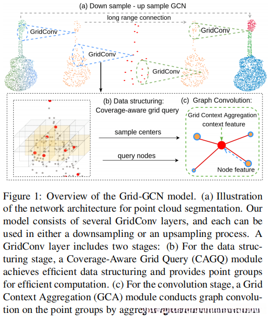 - 提出了一种名为Grid-GCN的方法,用于快速和可扩展的点云学习。 Grid-GCN使用一种新颖的数据结构化策略,即Coverage-Aware Grid Query(CAGQ)。通过利用网格空间的效率,CAGQ在降低理论时间复杂度的同时提高了空间覆盖率。