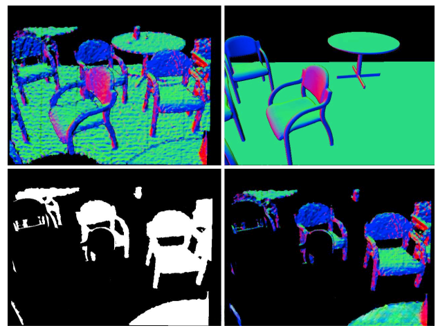 采用论文[6]中的方法来识别3D物体的6DoF姿态,通过网格表示在深度图像中。