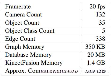 使用游戏本在10x6x3m的房间内测试。比较了SLAM++与KinectFusion.