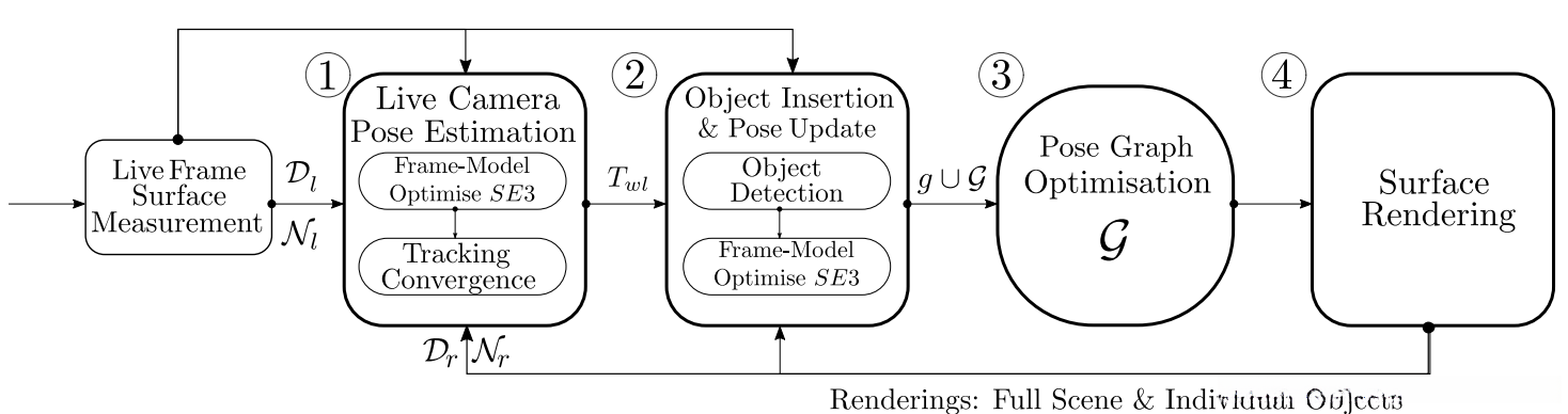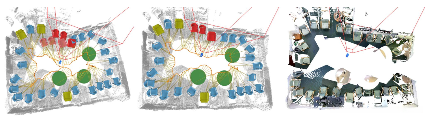 Camera-Object Pose Constraints: 该过程将所有检测到的模型纳入考虑,一起来优化相机姿态,用的方法仍然是通过ICP。
