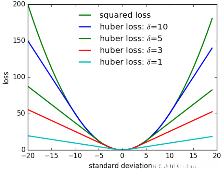 Huber loss是为了增强平方误差损失函数(squared loss function)对噪声(或叫离群点,outliers)的鲁棒性提出的。
