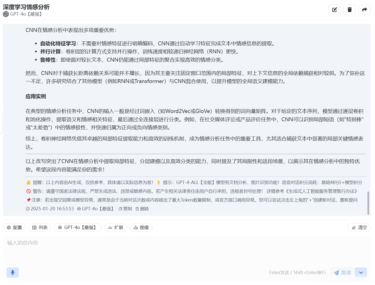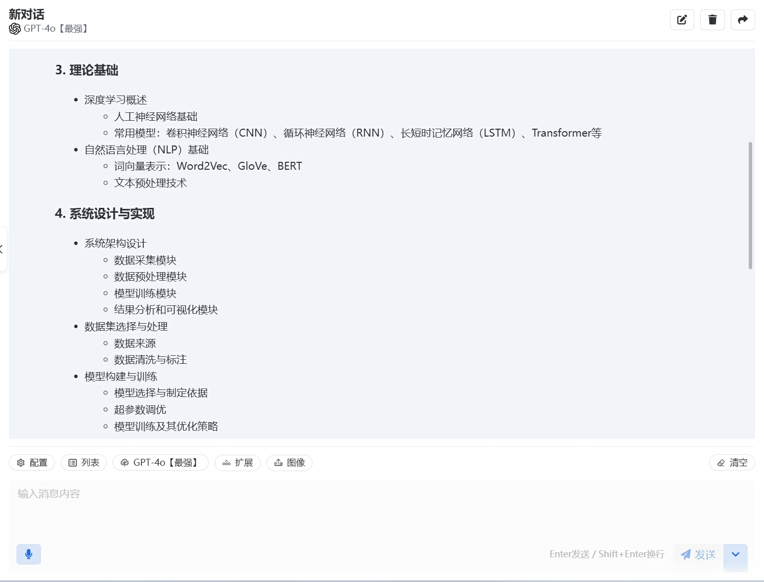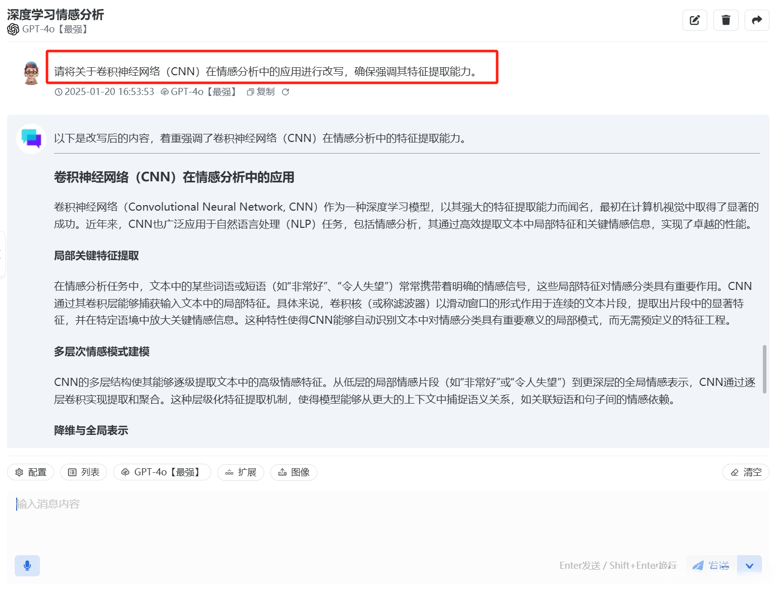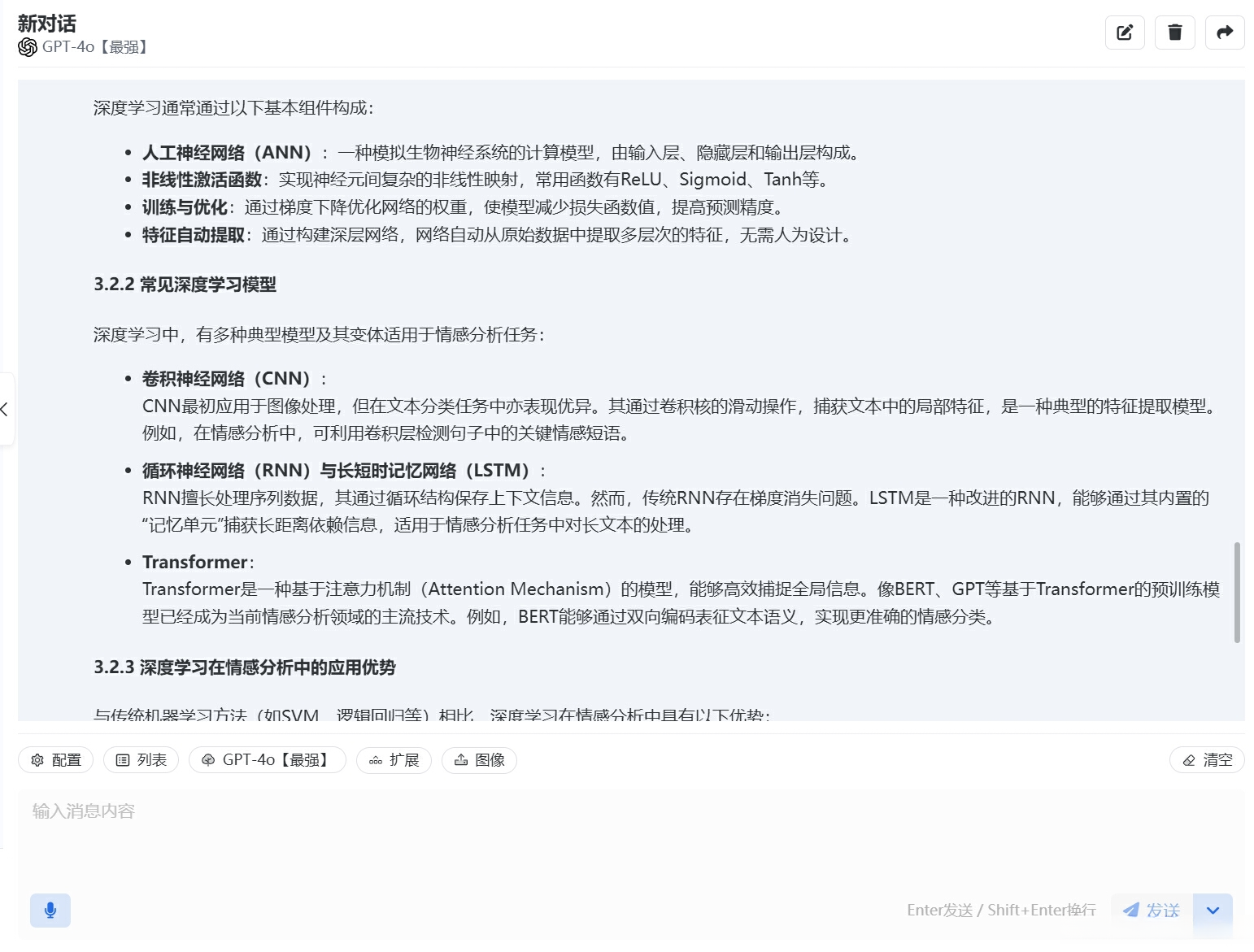 通过本文的实战演示,我们展示了如何利用ChatGPT高效撰写一篇关于“基于深度学习的情感分析系统”的论文。从模型选择到大纲创作,再到正文扩写和改写,ChatGPT为我们的学术写作提供了强有力的支持。在此基础上,我们也分享了一些实用的提问技巧,以帮助读者更好地利用这一工具。希望这些经验能够帮助你在学术写作中事半功倍,轻松完成高质量的论文创作!