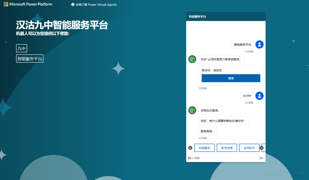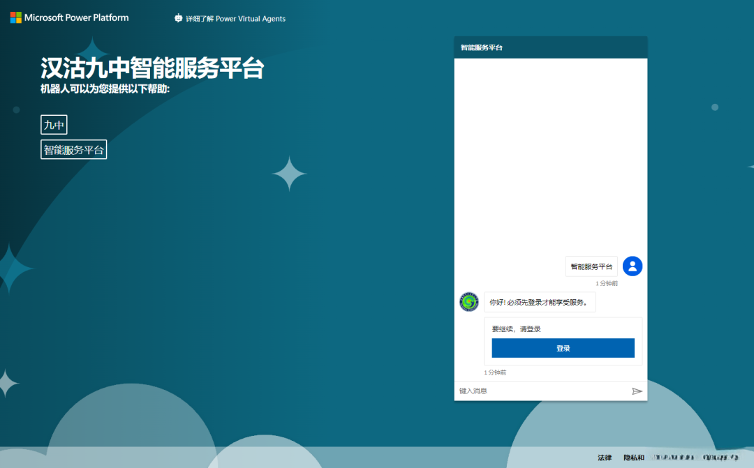 进入发布完毕的PVA聊天机器人后在对话框中输入触发短语后会在聊天界面出现一个“登录”按钮。