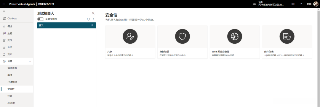 将复制好的”客户端ID”和“客户端密码”粘贴到PVA聊天机器人的“身份验证”中后点击“保存”,保存完毕重新对PVA聊天机器人进行发布。