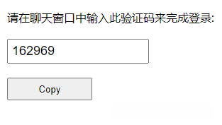 登录之后,会出现一个验证码窗口。将验证码进行复制并粘贴到PVA聊天机器人的对话框中进行身份验证。