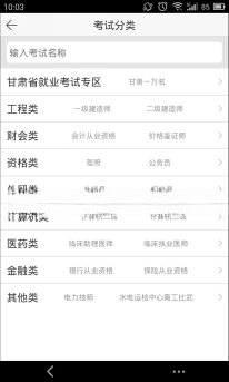 3.模块气球——考试 点击“考试图案”的模块气球,用户将进入考试子模块的界面,用户可以自定义改变背景图片;主界面会以显目的字体浮现“考试倒计时”及推荐的复习资料;考试主界面上会对各专业的考试进行分类;并且,用户可以通过搜索框来快速搜索专业类别;点击”专业类别”则进入下一个界面,在这里用户可以选择历年的课程考试真题;点击对应的真题,可以通过在线做题巩固所学知识;点击”收藏“按钮可以收藏试题资料,点击“分享”按钮,可以将资料传给另一个用户;点击“我”按钮,可以出现一个做题通过率的“趋势表”,用户可以直观的了解目前的学习情况;点击“视频学习”可以加载教学视频供用户学习;此款APP提供免费的电子辅导书籍,用户可以下载或在线阅读。 APP的考试模块收集了大量的试题组建起“试题库”,在线的测试可以帮助用户实现随时随地做题,随时随地轻松阅读,实现“随身学习,每天提高”。 【例如“下图为考试模块气球的部分界面及其子界面】 ![]() ![]() ![]() ![]() |