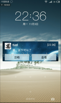 目前大部分的手机都有自带锁屏功能,这能大大的保护手机的荧幕;所以,人们使用手机的第一个通道就是通过锁屏荧幕上的解锁功能(如:有滑动解锁和密码解锁等)进入手机的功能界面。因此,此款APP提供锁屏荧幕上清晰显示的即时信息,能够让使用者迅速的了解信息的具体内容。 【例如:下图为锁屏荧幕上显示即时消息】 ![]() ![]() |