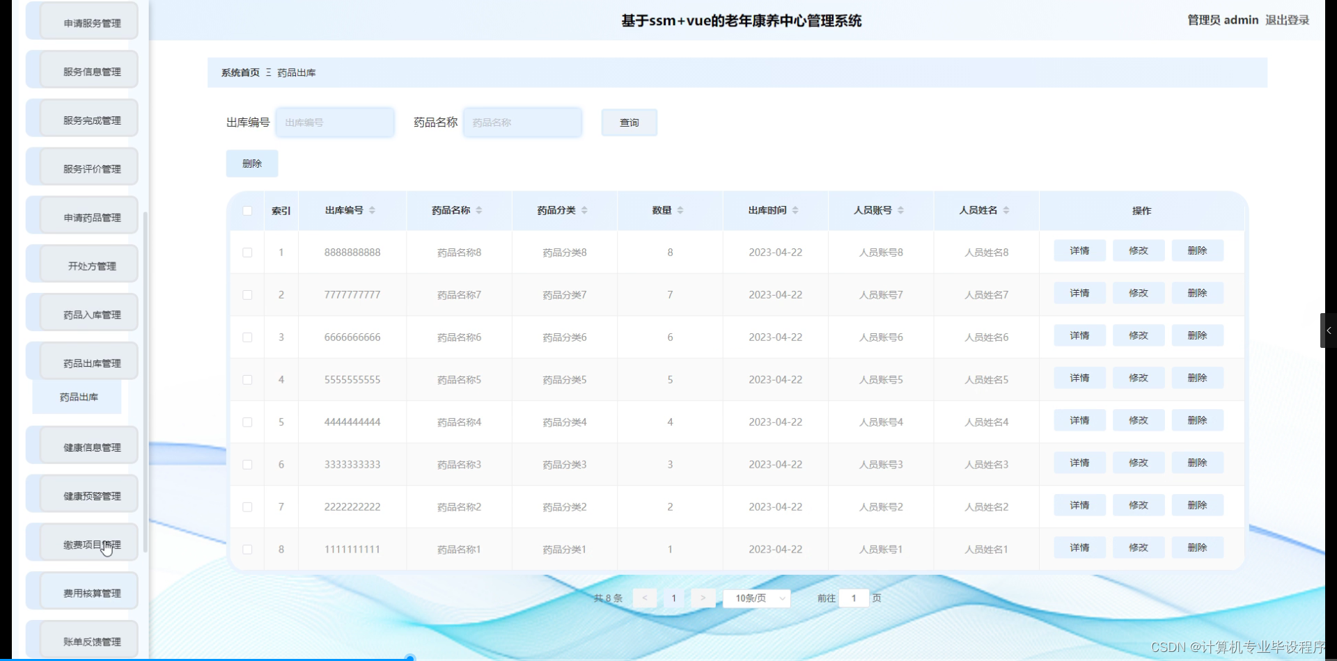 随着社会的发展和人口老龄化的加剧,老年人的健康和生活质量成为了社会关注的焦点。为了提供更好的养老服务,老年康养中心应运而生。然而,随着老年人口的增加,老年康养中心的管理和服务面临着巨大的挑战。传统的手工管理方式已经无法满足现代化的养老需求,因此,开发一套高效、便捷的老年康养中心管理系统显得尤为重要。该系统将采用前端技术HTML、CSS、JavaScript和Vue,后端技术Python和Flask,以及MySQL数据库进行开发,以实现对老年康养中心的各项业务进行有效管理。