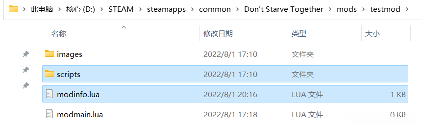 其实在我看的也不是很多。(相比而言),饥荒mod当modinfo.lua文件存在时,并且其中name字段具有值,则该情况就已经存在。(实际上我没尝试过不设置name字段的效果如何)。