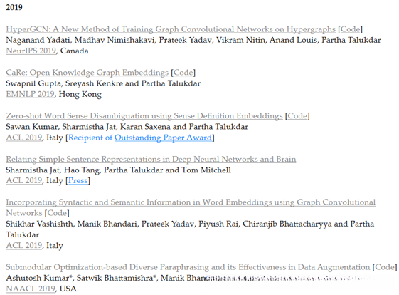 图1 Partha Talukdar 的发表论文(2019,部分)