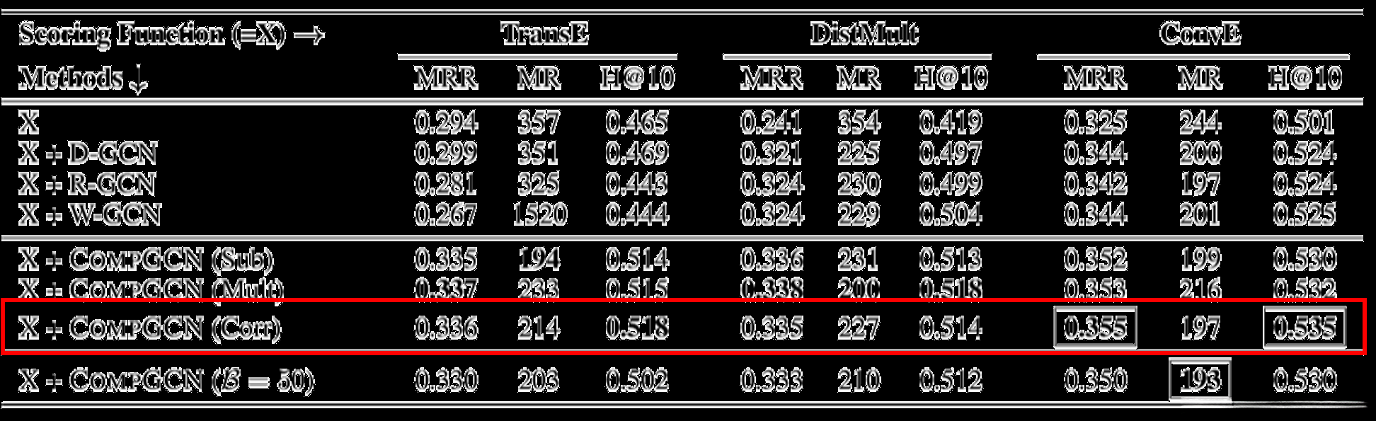 )来表示时的性能,基本可以与最好的CompGCN结果相比。