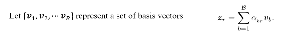的数量和维度也会影响模型的参数量.因此,为了能够使用统一的关系向量来表征不同的关系类型和数量,作者提出了基向量的方法.即通过构建基向量集合来反映不同关系类型及其存在的数量特征
