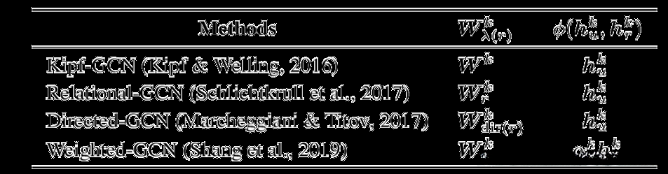 在引入组合机制和边的方向属性之后,GCN的编码函数可以进行改写,即: