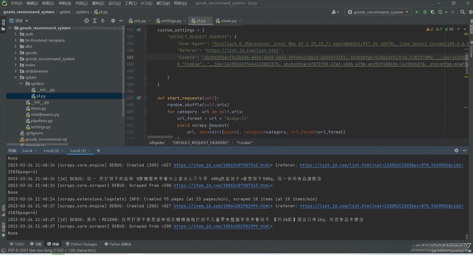 - Scrapy爬虫框架:一个用于快速高效地抓取网站数据的Python框架,用于采集京东商品数据。