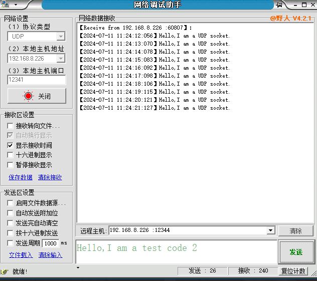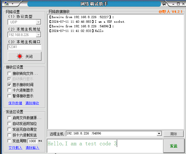 udp_socket.sendto("Hello,I am a UDP socket.".encode('utf-8'), ('192.168.8.226', 12341))