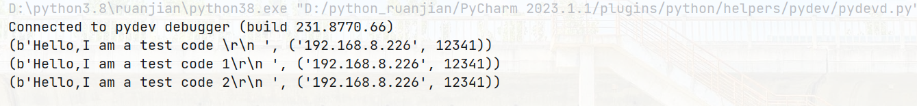 可以看到,打印出来的信息是一个元组,第一项接收到的字符串,第二项也是一个元组,包含对方的IP地址和端口号