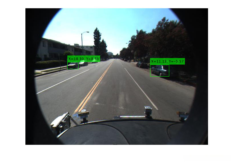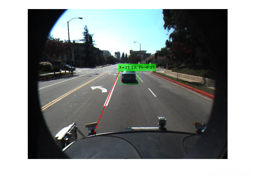 确定车辆的位置信息。该系统通过图像处理算法获取并返回包含目标物体区域的矩形边界框;进而输出该物体在地面参考系下的中心点坐標值。此外,在车体固定坐标系下定位该物体的位置信息;由于所采用的是单眼相机传感器并基于简单的同质图模型;因此仅能实现水平面上的距离测量;而在三维空间中定位任意点则需依赖于立体摄像机或三角测量传感器等辅助设备