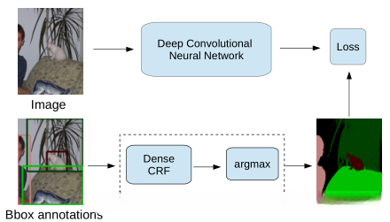 这两种方法如上图所示,是将边界框注释的分割图作为预处理进行估计,然后将这些估计的标签视为ground truth采用像素级标注的方式训练。