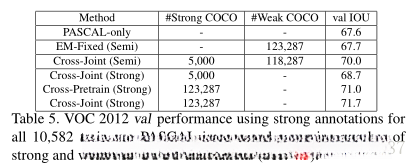 Cross-Joint(semi):和Cross-Joint(Strong)一样,区别是使用VOC的像素级标注,MS-COCO的像素标注和图像集标注。