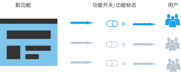 功能开关可以先确定目标用户,限定新功能用户范围减少对用户的影响,实现在生产环境中进行功能测试。