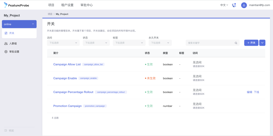 当前 FeatureProbe 作为一个功能开关管理平台已经使用 Apache 2.0 License 协议完全开源,你可以在GitHub 和 Gitee 上访问源码。