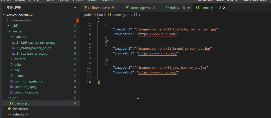 ImageUrl="里面添加图片的地址",CourseUrl="里面添加页面跳转的地址"